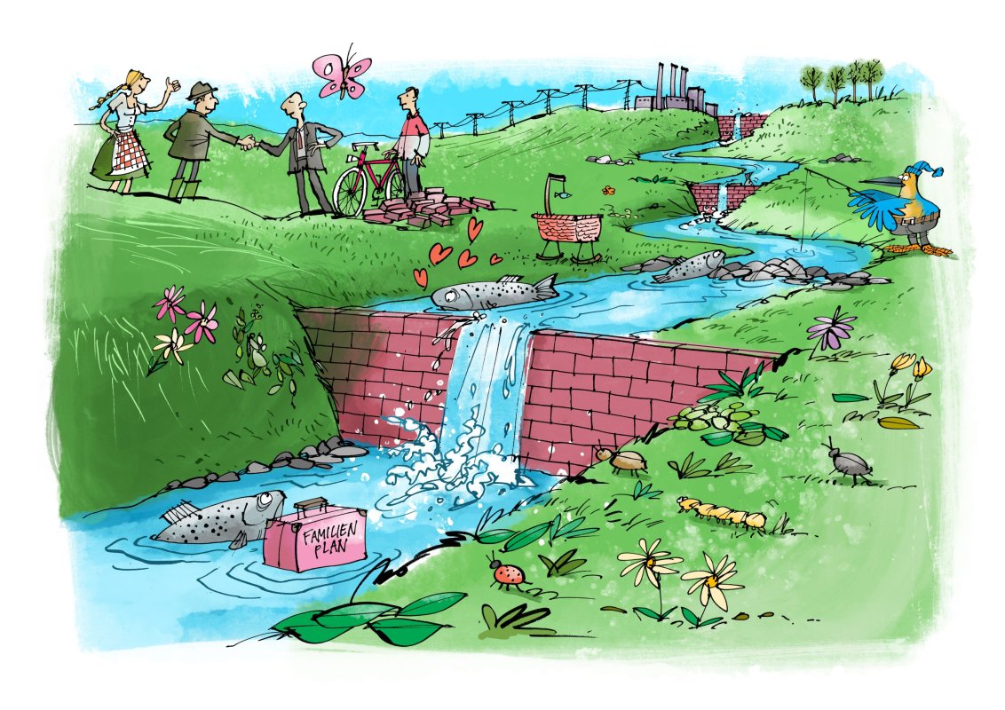 Fische wandern flussaufwärts, flussabwärts und das sogar über weite Strecken bis zu 300 Kilometer. Nicht jeder unserer heimischen Flüsse bietet den Fischen auf großer Länge eine barrierefreie Wanderung.